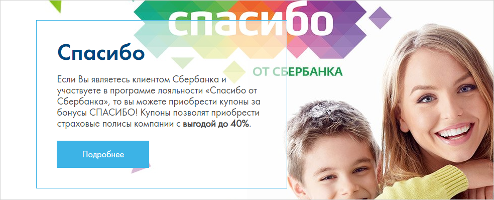 Купить полис дешевле можно, если использовать некоторые возможности. Один из самых популярных – оплачивать покупку с помощью банковской карты Сбербанка «Спасибо!». Это дает возможность получить скидку до 40% в течение определенного периода времени, указанного на сайте страховой компании.