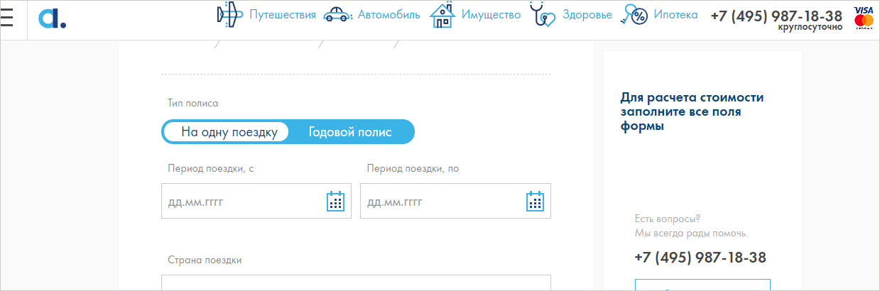 Для приобретения страхового полиса нужно просто зайти на соответствующую страницу компании. Здесь располагается онлайн форма расчета стоимости страховки. Достаточно ввести в нее данные, следуя простой инструкции – и сервис рассчитает цену полиса.