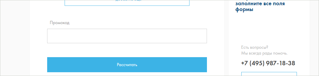 Здесь вы увидите электронную форму для расчета и покупки полиса. Внеся в нее все сведения и получив расчет, вы можете оплатить покупку. При этом внесите в специальное поле промокод – и цена за страховку будет ниже.