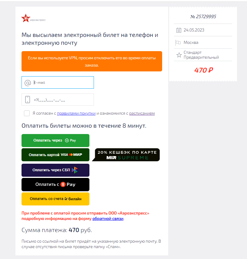 - Внесите оплату удобным способом. Это можно сделать с карты любого российского банка, со счета мобильного телефона и другими способами. Учтите, что время на оплату ограничено. Если вы не успеете за указанный временной промежуток внести деньги, бронь снимется.