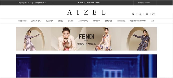 Интернет-магазин Aizel — первый модный маркетплейс в России. Заказывать новые коллекции можно сразу после того, как посчастливилось лицезреть их на подиуме. Клиентский сервис носит полностью приватный характер. При затруднениях клиентов бесплатно проконсультируют высококвалифицированные юристы. Осуществляется экспресс-доставка по территории России и СНГ. На сайте можно ознакомиться с обзором новинок, просмотреть фотосессии, прочитать вдохновляющие интервью с дизайнерами.