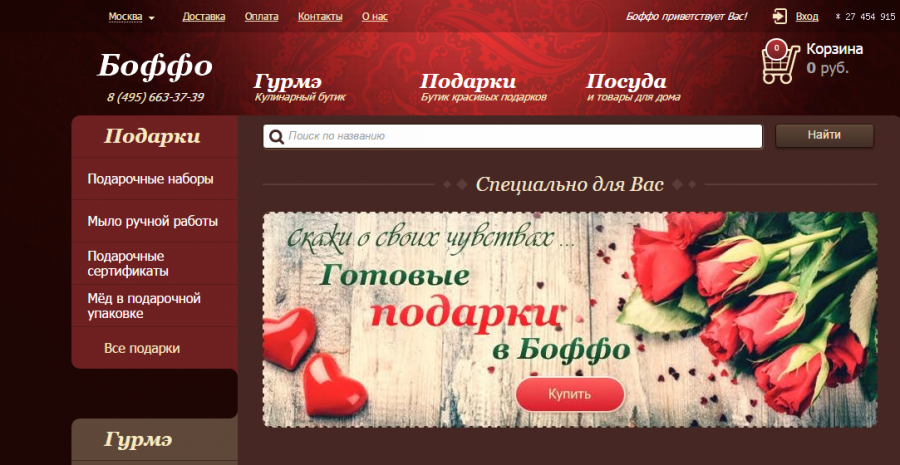 Интернет-магазин Боффо работает в нескольких направлениях: