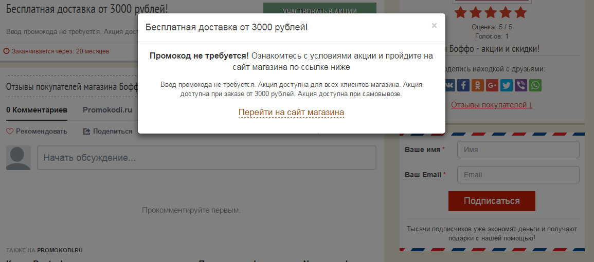 Некоторые промокоды Боффо не требуют активации. Вам нужно просто выбрать подходящую акцию на этой странице нашего сайта promokodi.ru и перейти по соответствующей ссылке: