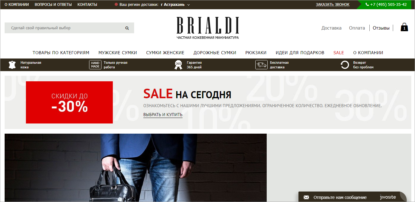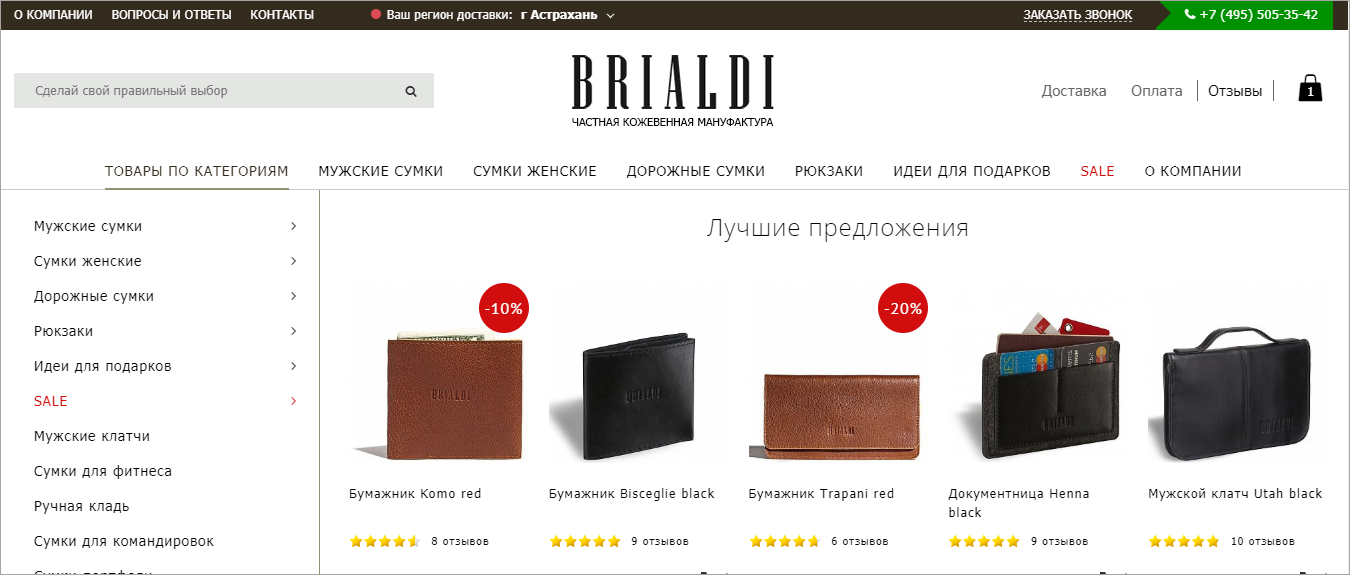 Продукция Brialdi реализуется не по самым низким ценам. И это неудивительно, ведь качество на высочайшем уровне. Но используя наши промокоды, вы можете существенно сэкономить и купить сумки, рюкзаки и другие изделия из кожи по выгодным ценам.