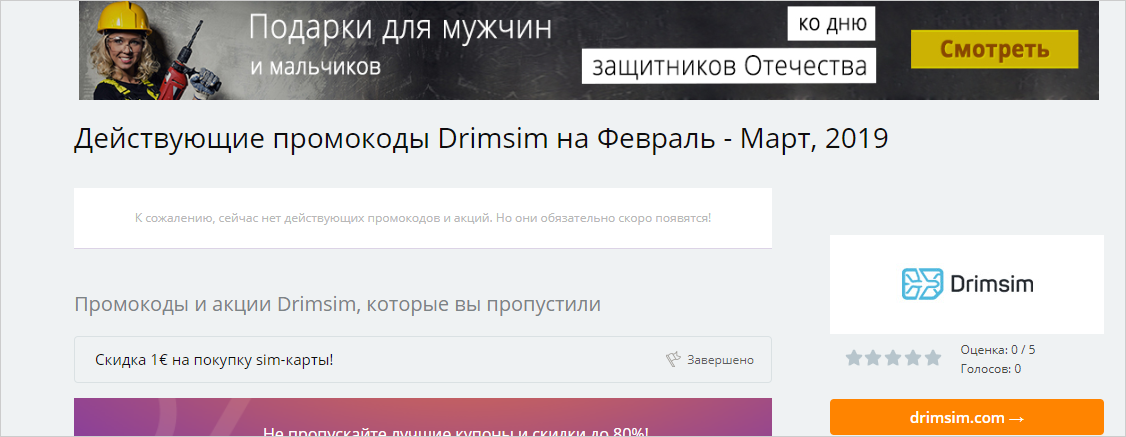 Порталы, где находятся промокоды drimsim.com, можно найти в интернете. На сервисе promokodi.ru всегда в наличии самые актуальные предложения сотен магазинов. Для доступа к ним не требуется регистрироваться.