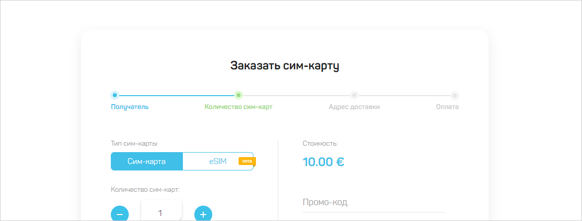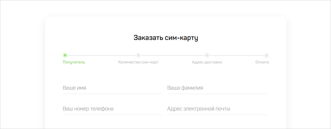 Определяйтесь с числом сим-карт, которые вам необходимы. Внеся в электронную форму свои контактные данные, вы сможете перейти к дальнейшим шагам.