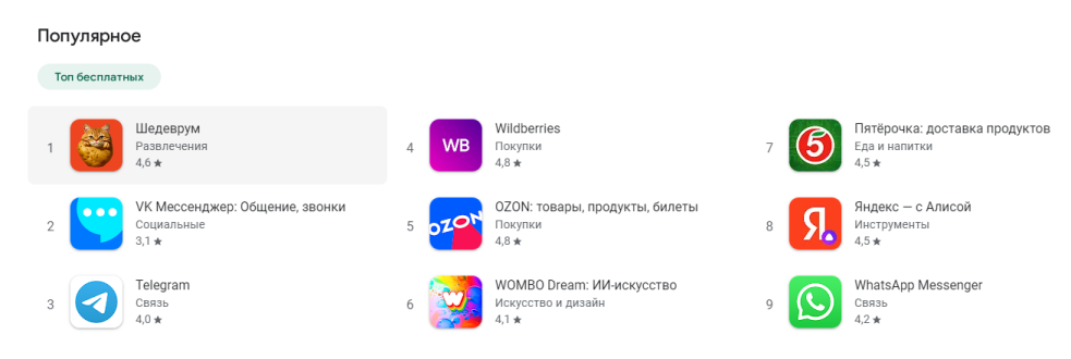 В каталоге сервиса очень много приложений, которые полностью или частично доступны без оплаты. Обращайте внимание на описание – в нем не должно быть слов «Есть платный контент». Чаще всего в бесплатных программах нужно смотреть рекламу после загрузки или в ходе использования. Но это в основном касается игр.