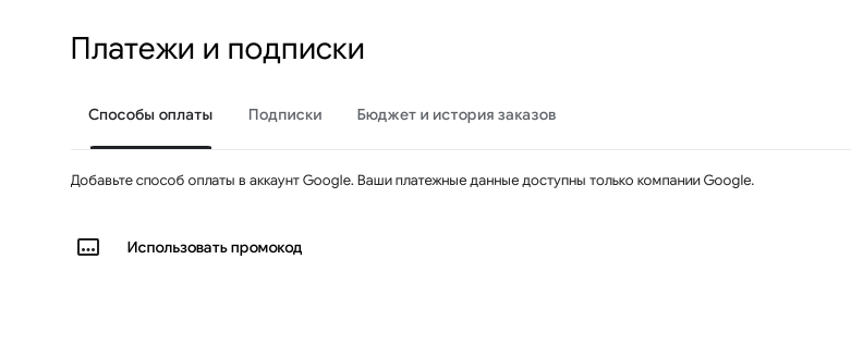 Зайдите в свой профиль на Google Play. В разделе профиля выберите «Платежи и подписки», затем перейдите к добавлению способа оплаты.