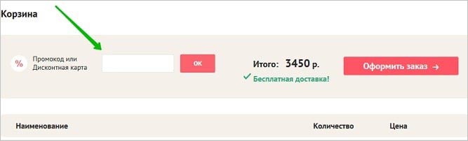 Полученный промокод или купон HolySkin следует ввести в соответствующее поле при оформлении товаров, отложенных в «Корзине», расположенное немного выше списка выбранных товаров: