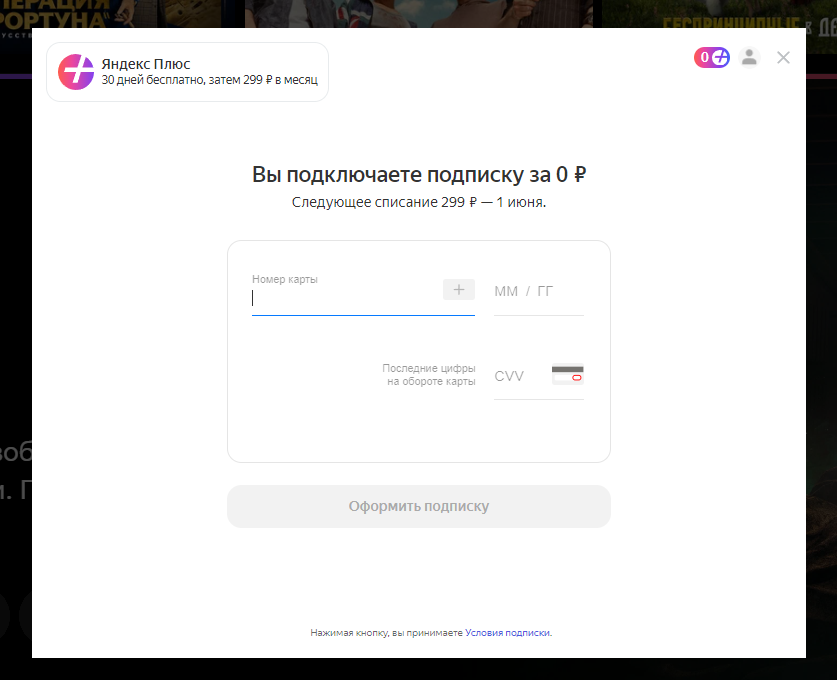 Еще один способ просматривать контент на Кинопоиске – оформить онлайн-подписку Плюс. По ней доступно более 9000 фильмов и сериалов. Также подписка дает доступ к Яндекс Музыке. Вариантов подписки три: