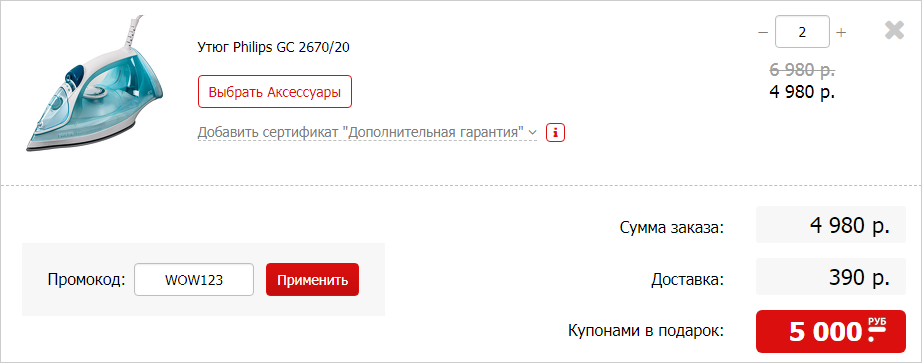 Чтобы получить скидку на интересующий товар, достаточно выбрать предложение из списка доступных акций и нажать на соответствующую кнопку.