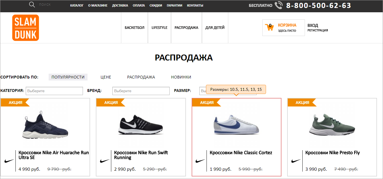 Доступные цены и промокоды Slamdunk сделали онлайн-магазин ТОПовым в России.