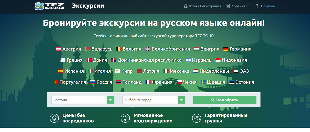 Компания Tezeks с 2013 года предлагает огромнейший выбор увлекательных экскурсий в Австрии, Чехии, Германии, Франции, Великобритании, Испании, ОАЭ и многих других странах мира. На страницах портала вы можете ознакомиться с актуальными развлекательными программами и узнать отзывы бывалых путешественников. У клиентов есть отличный шанс быстро забронировать экскурсию в режиме онлайн.
