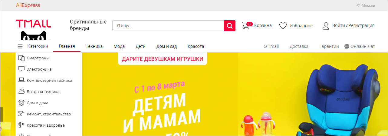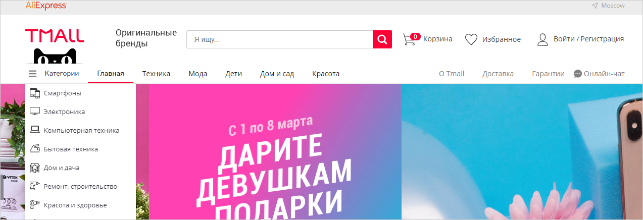 Tmall.aliexpress.com – сервис доставки товаров с Аliexpress в России. Удобный каталог и служба поддержки на русском языке. Возможность получить гарантийное обслуживании приобретенной техники в России.