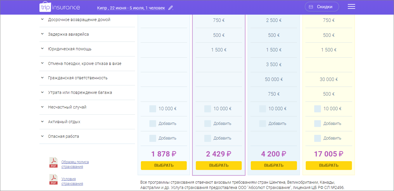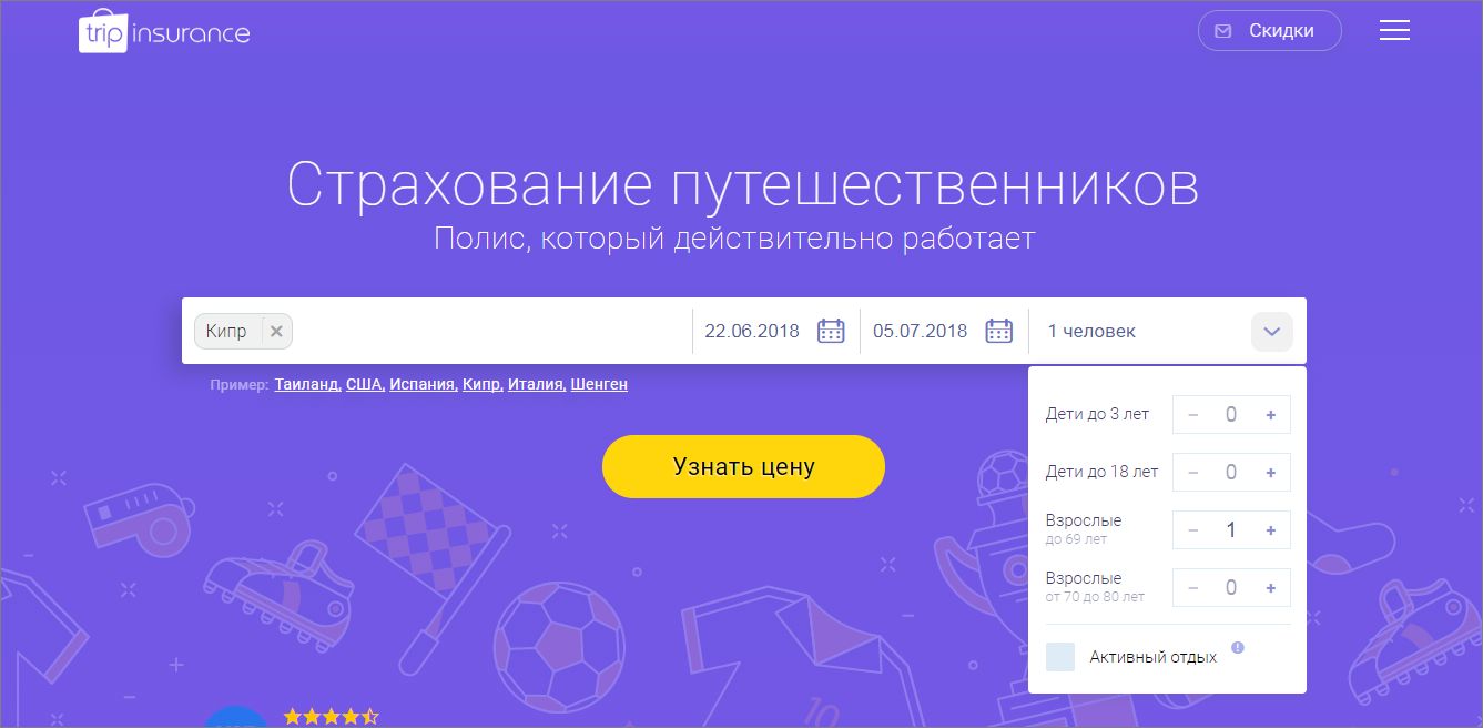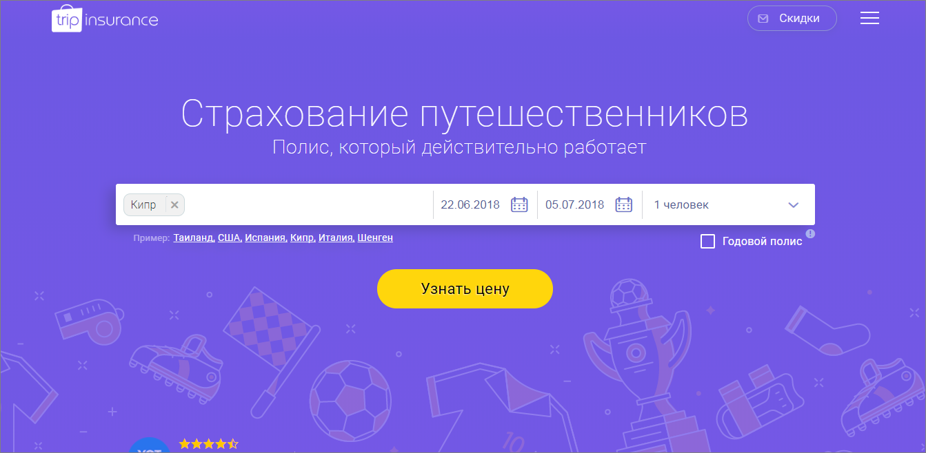 Не менее важный фактор, благодаря которому клиенты выбирают Tripinsurance — акции и скидки на сайте.