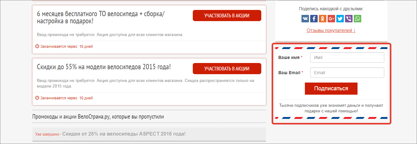 Либо просто подпишитесь на рассылку уведомлений об акциях на нашем сайте. Для этого введите свое имя и почту, нажмите «подписаться».