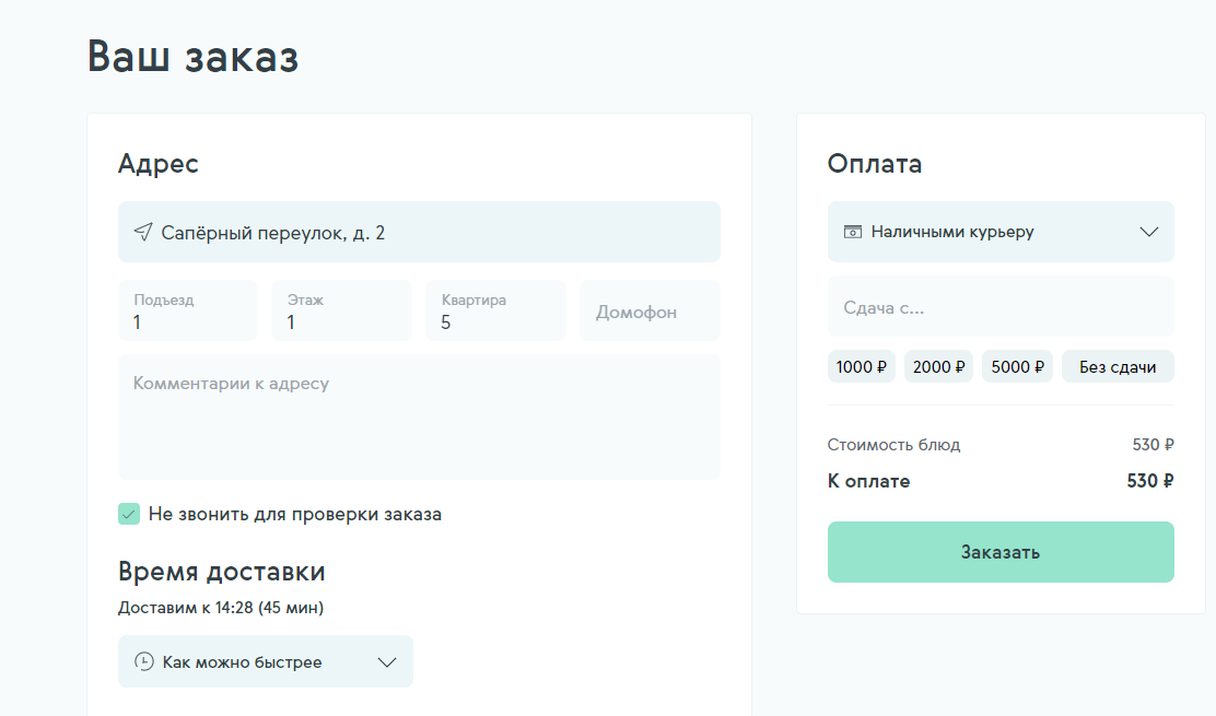 Для оформления заказа вам необходимо открыть сайт или приложение сервиса. Выберите свой адрес, чтобы система определила, входите ли вы в зону доставки. Если все в порядке, вы увидите время, через которое курьер будет у вас.
