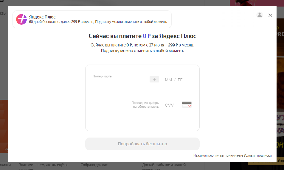 В первые 2 месяца платить на доступ к контенту не нужно. Чтобы подключить пробный период, потребуется: